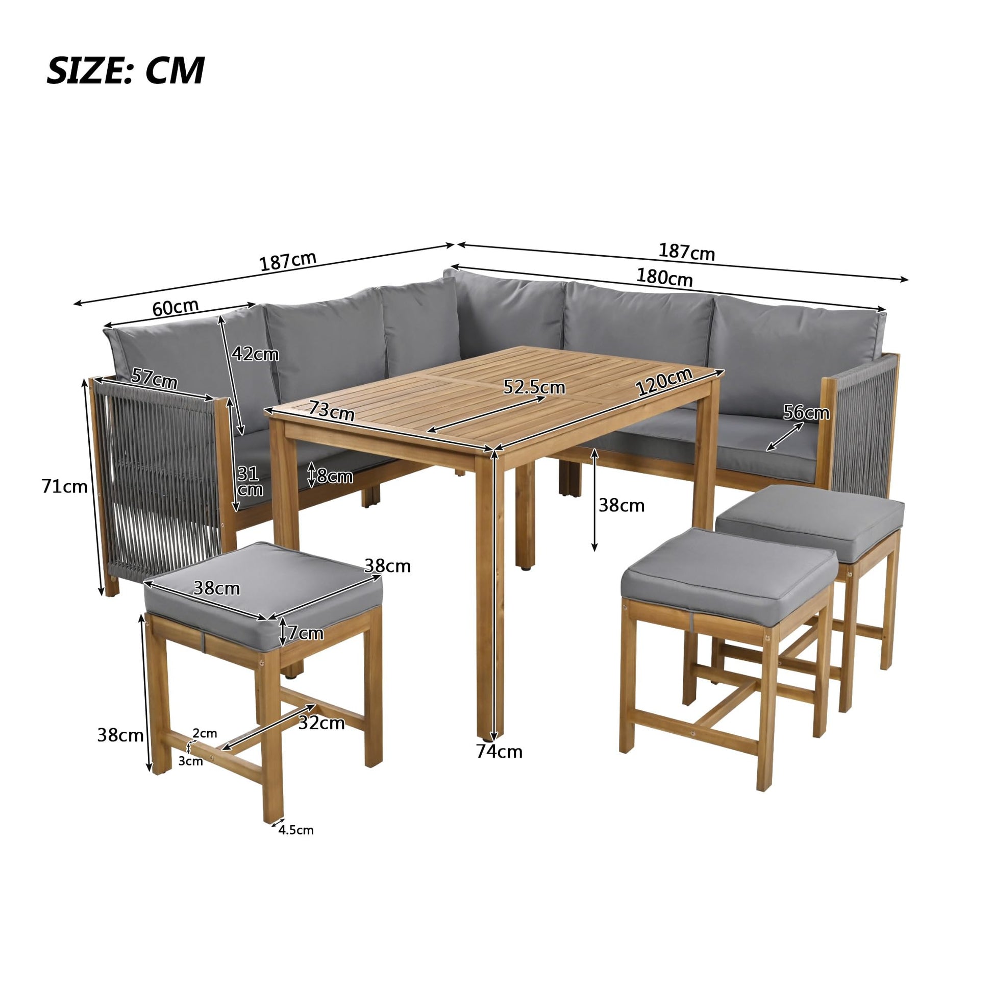 - Einzigartiges Erscheinungsbild: Im Vergleich zu herkömmlichen Gartenmöbeln zeichnet sich dieses Tisch- und Stuhlset durch ein geflochtenes Seildesign, Akazienholzfarbe und graue Kontrastfarben aus, verbindet klassische und moderne Stile, präsentiert ein einzigartiges Erscheinungsbild und verleiht dem Außenbereich Modegefühl und Schönheit.